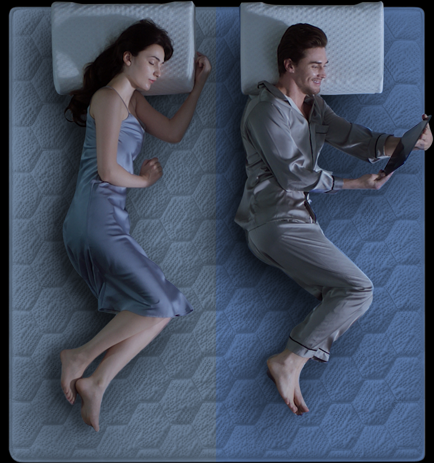 基于华体会智能调节专利技术,床垫左右两边独立调节,满足夫妻双方不同体型及睡姿变化的睡感需求,私人专属睡眠,互不影响。