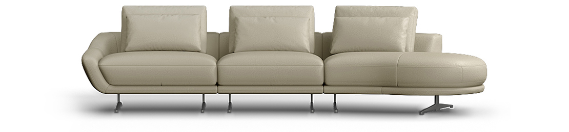 沙发整体圆弧形设计,完满地勾勒出沙发优雅柔美的线条,